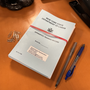 The NYS DOL apprenticeship Blue Book is an official logbook that apprentices use to track their on-the-job training hours. Each day, apprentices record the skills they practiced, hours worked, and get a supervisor's signature to verify their progress toward completing the required field training for their trade.