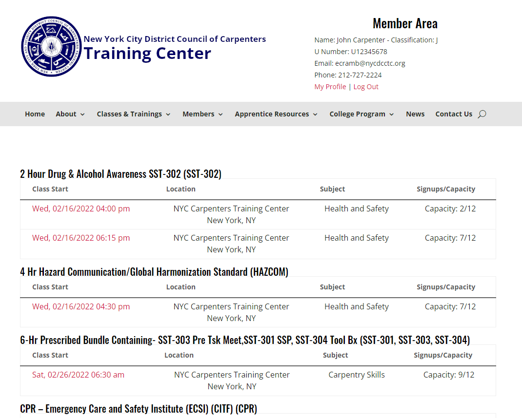 With the new NYC Carpenters Training Center website, you are now able to register yourself for classes. You can see which classes are available and pick a date and time that fits your schedule.
